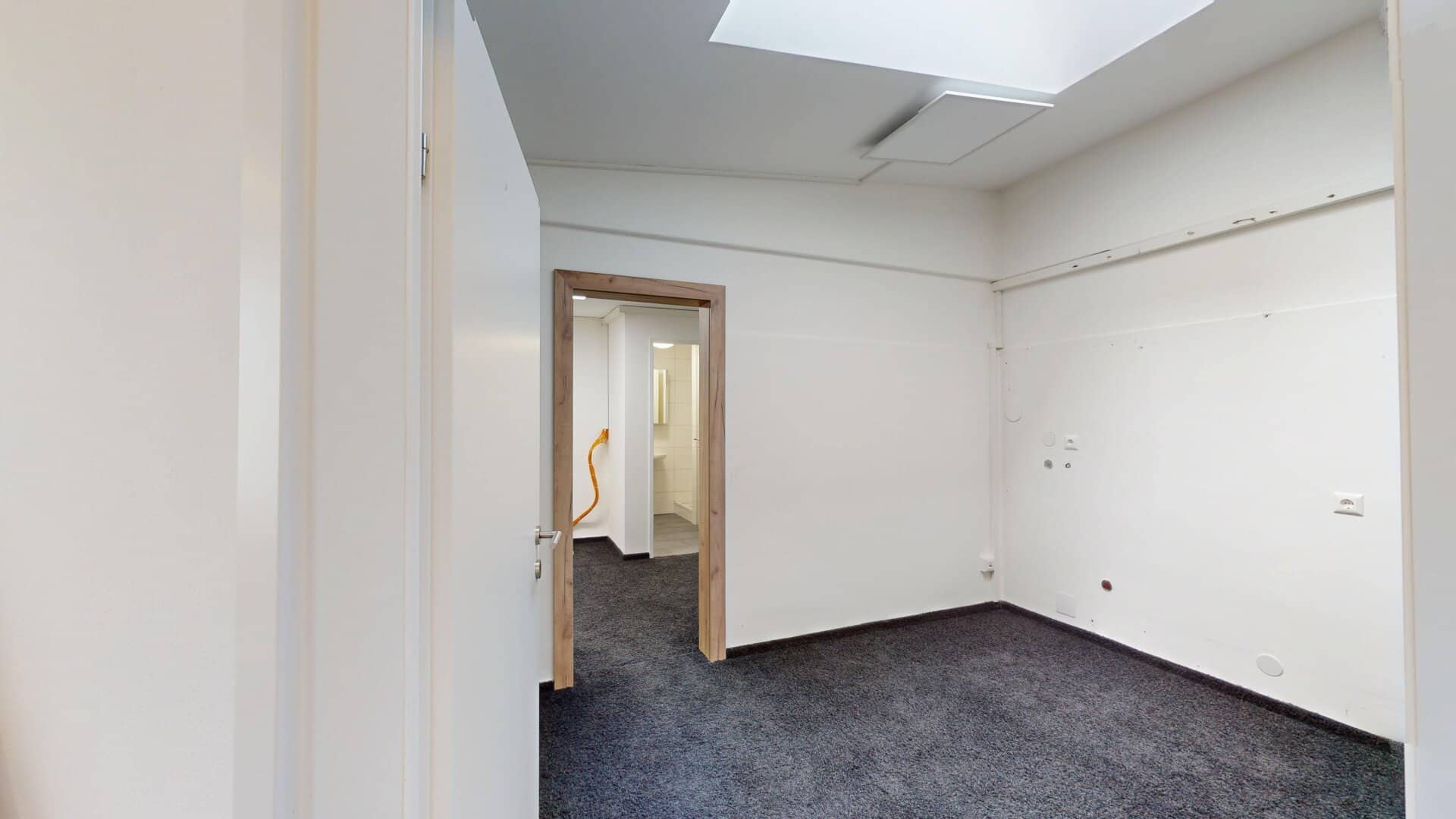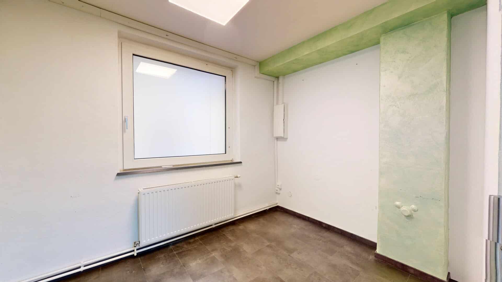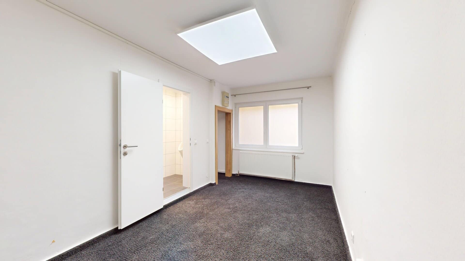 Anschließend folgt ein weiterer Büroraum mit angeschlossenem Abstellraum. Danach erschließt sich ein zusätzlicher Raum mit zweitem Eingang, der direkt vom schrankengesicherten Parkplatz zugänglich ist, sowie ein Badezimmer mit Dusche. Der hinterste Bereich wurde zuletzt als Kreativraum genutzt und verfügt über eine weitere Toilette sowie ein Pissoir, was die funktionale Ausstattung des Objekts abrundet.