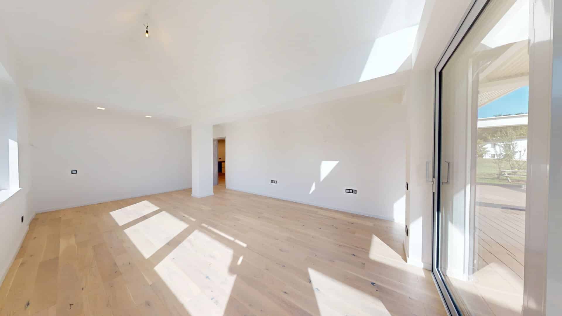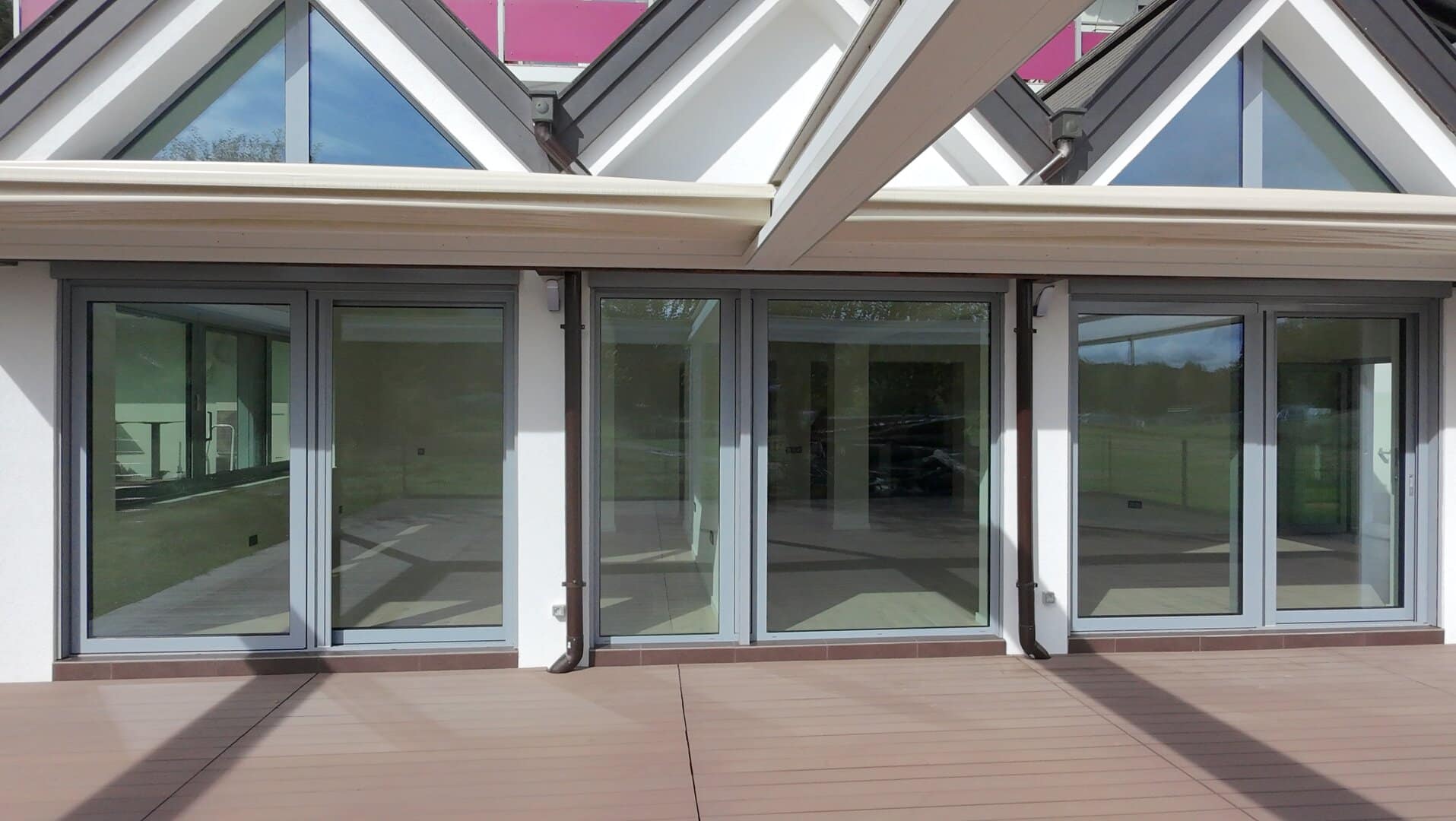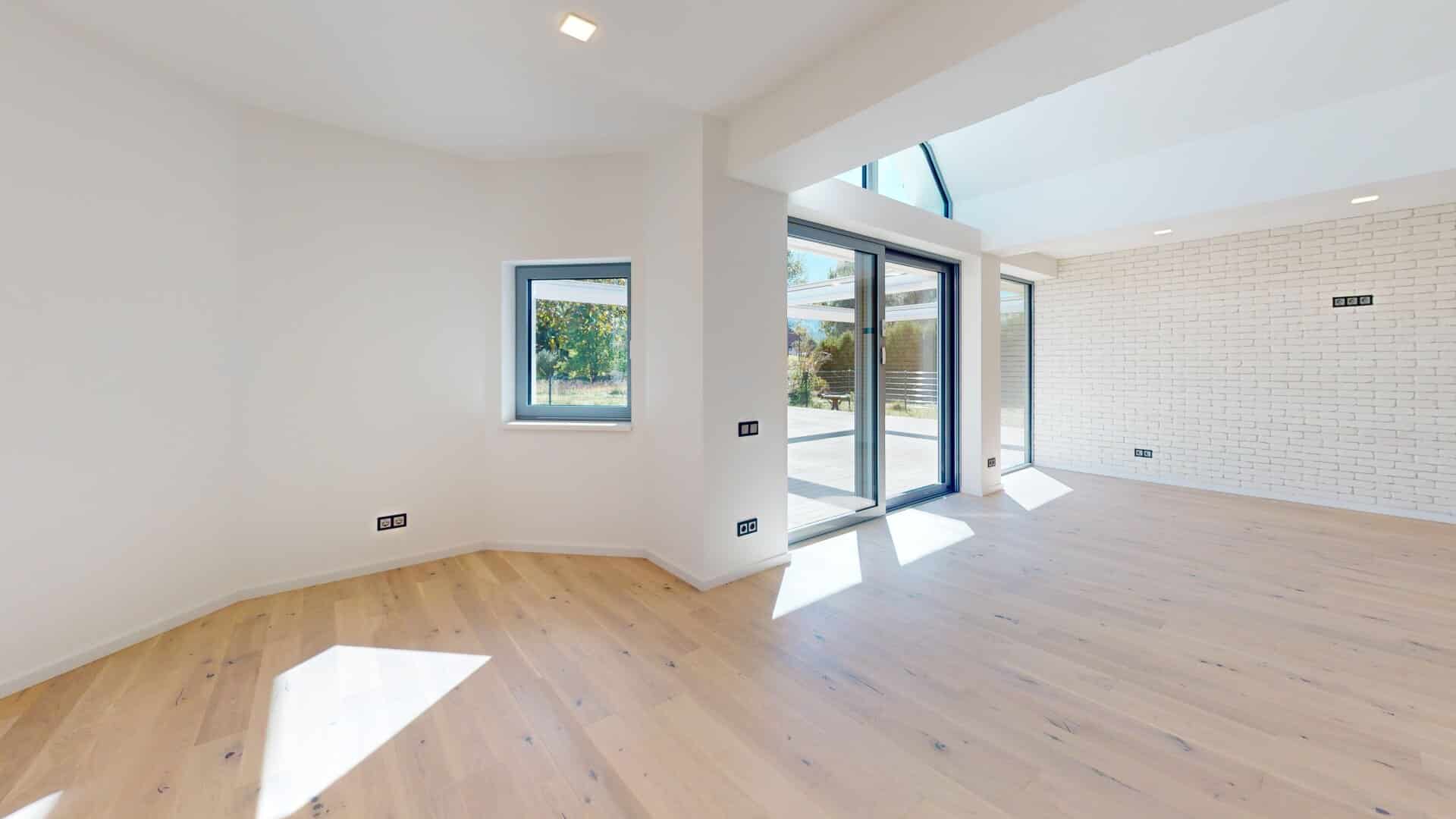 Großzügige Schiebetüre mit großer Fensterfläche zur Terrasse