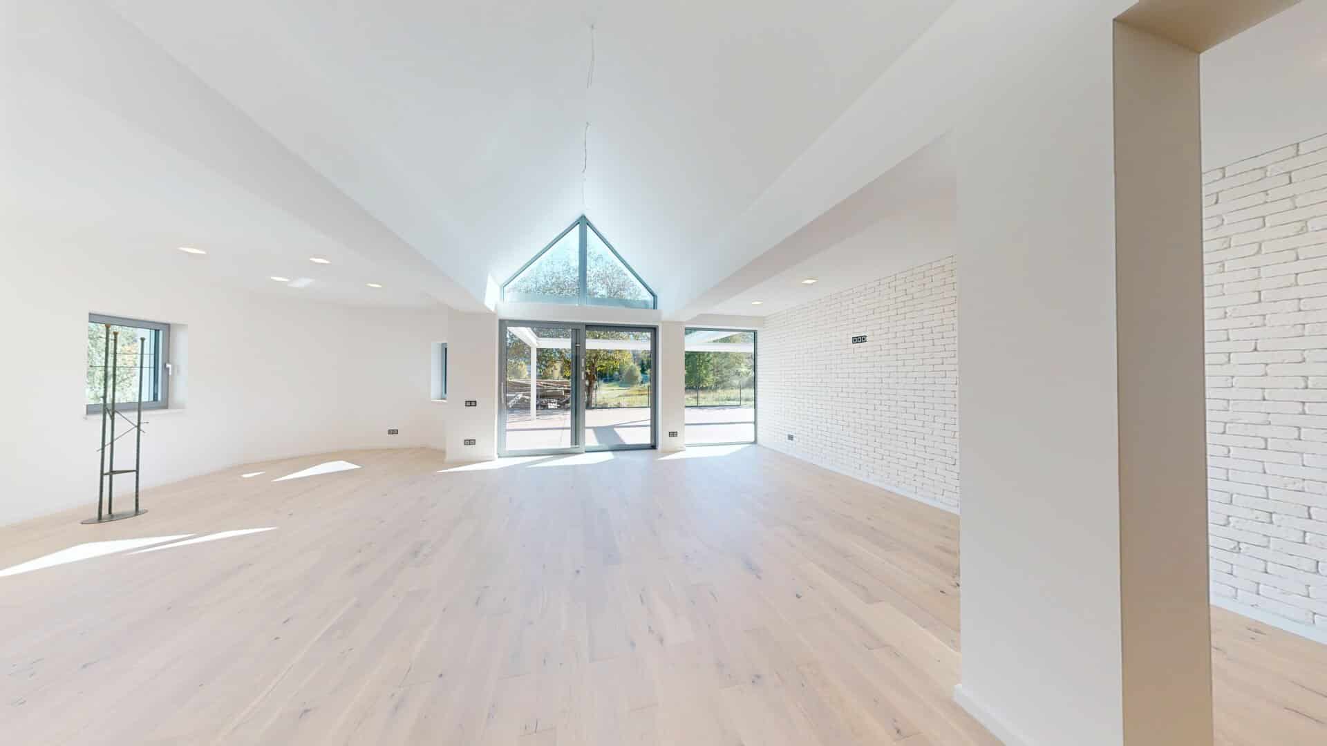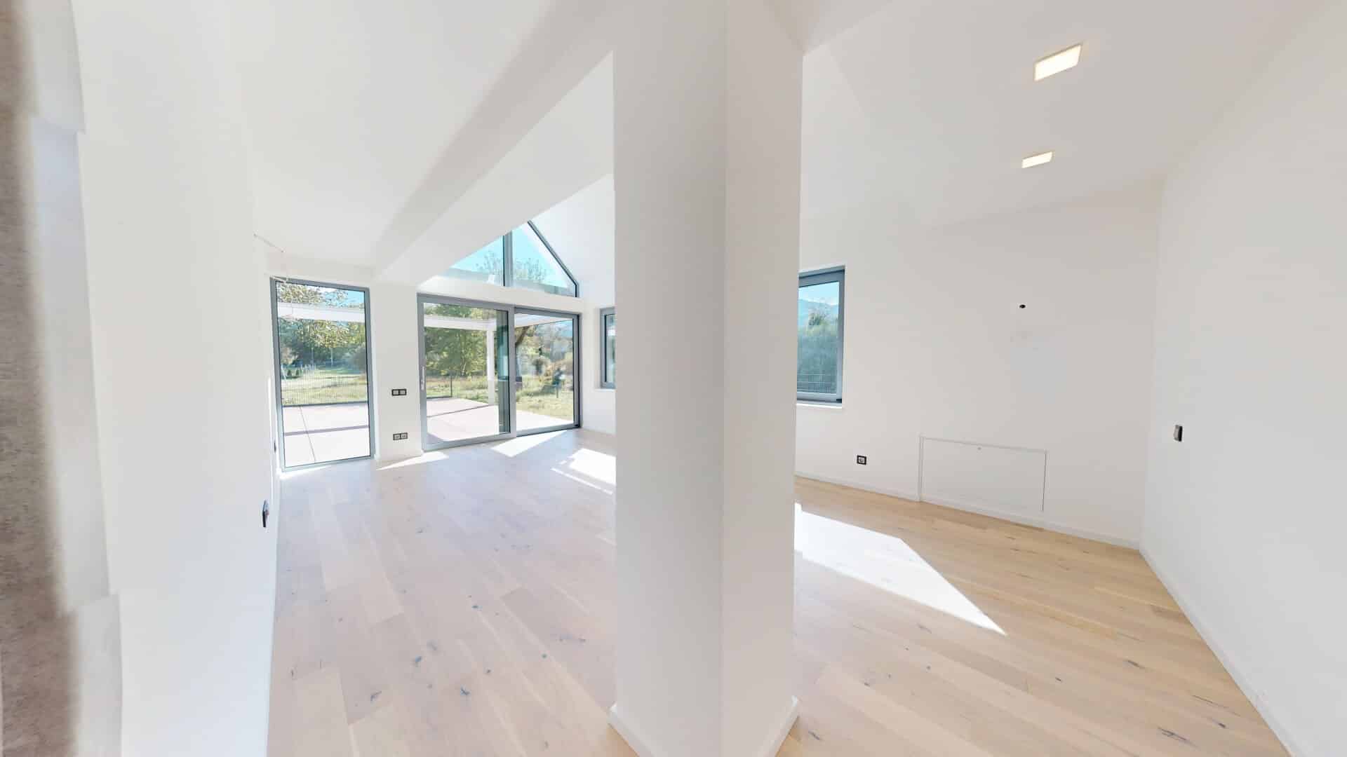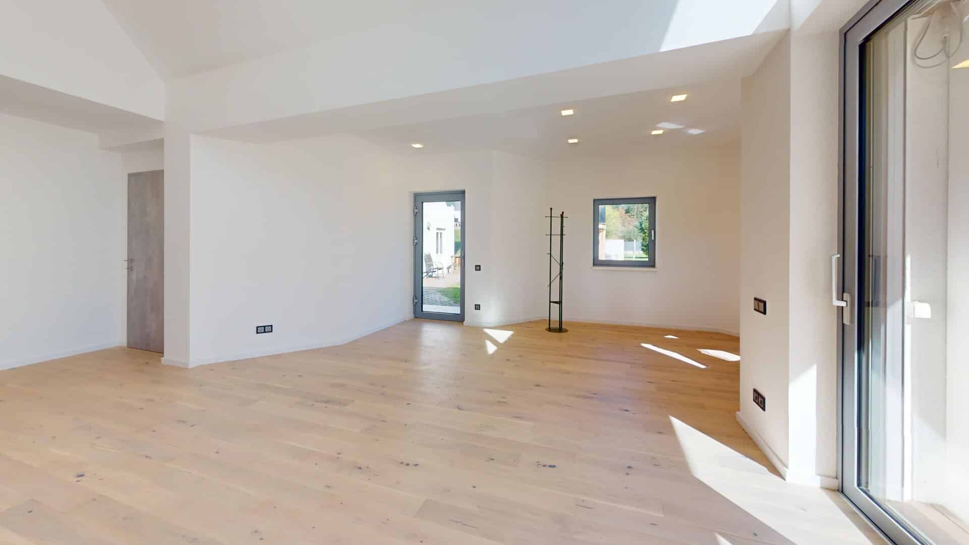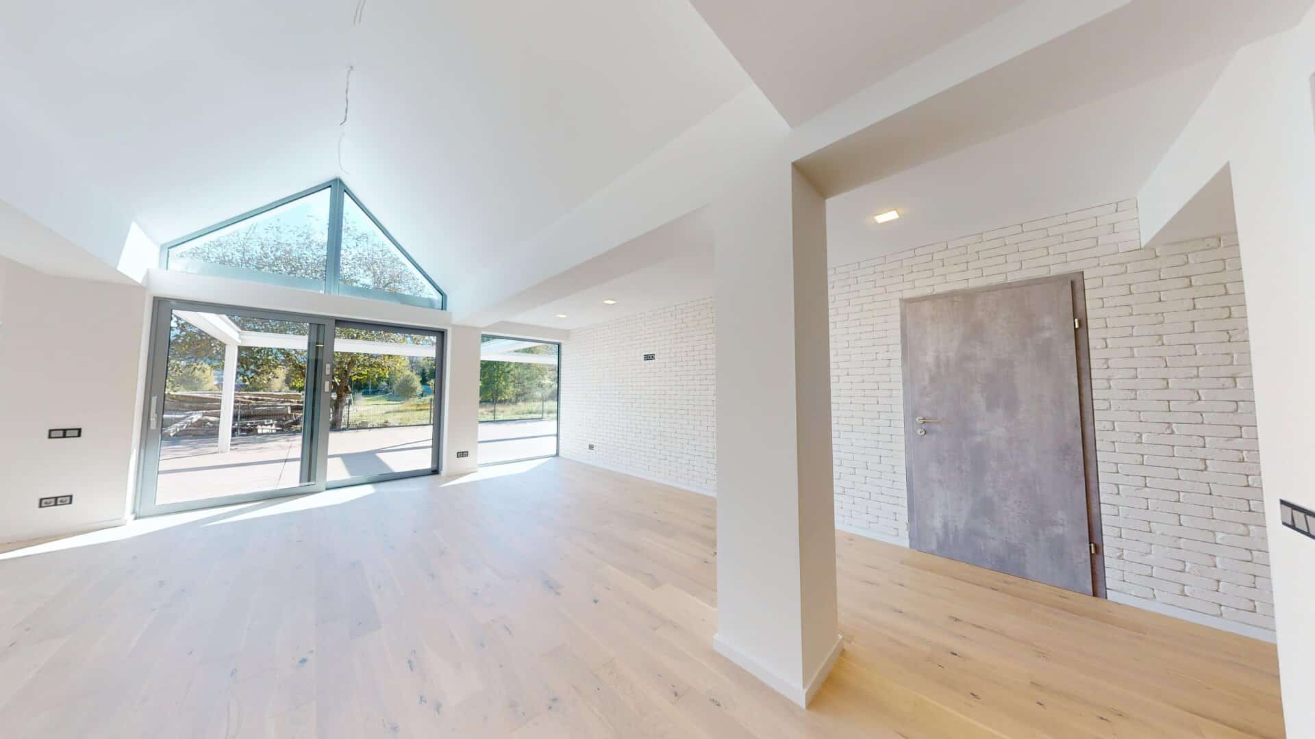 Großzügige Schiebetüre mit großer Fensterfläche zur Terrasse