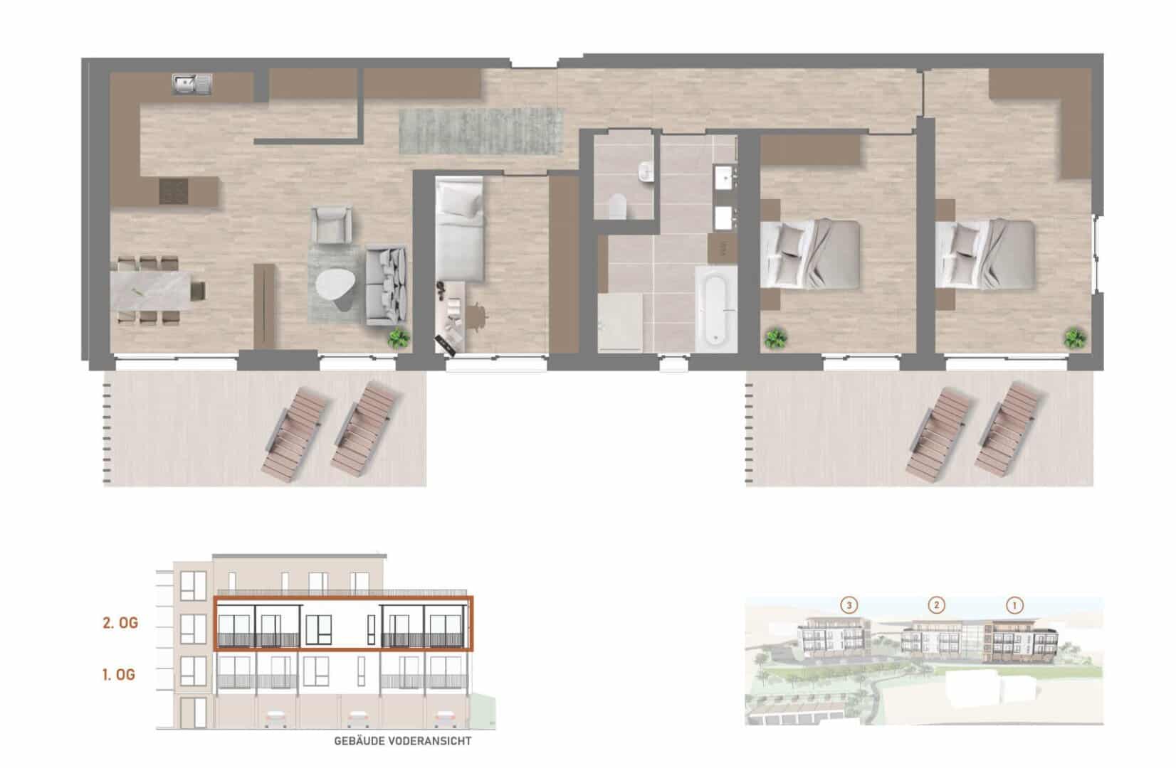 Diese stilvoll konzipierte 4-Zimmer-Wohnung im 2. Obergeschoss von Haus 1 vereint auf rund 105 m² Wohnfläche Großzügigkeit, Behaglichkeit und durchdachtes Design zu einem Zuhause, das sowohl Herz als auch Verstand anspricht.
